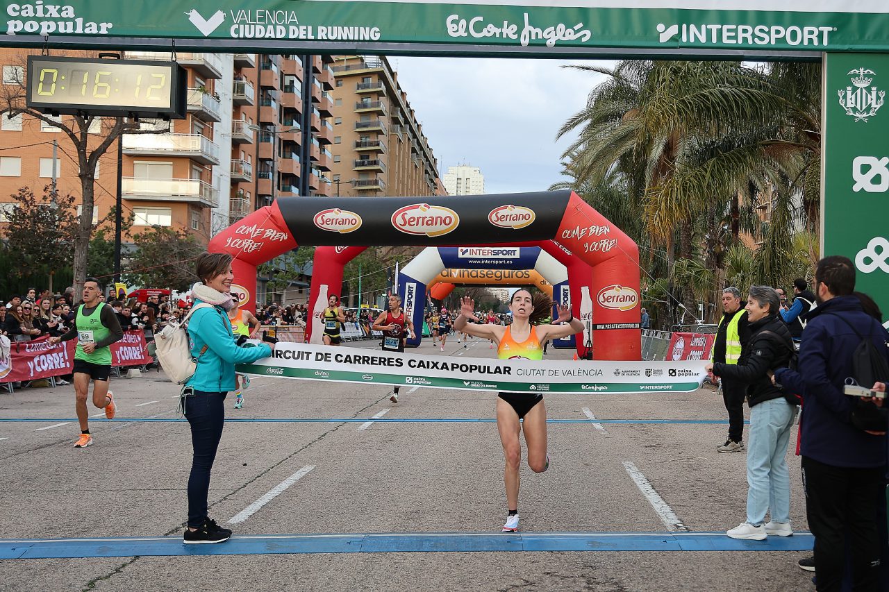 En categoria femenina, contundent victòria per a l’atleta del Serrà Club d’Atletisme María Ureña, qui amb un temps de 16.15 va avantatjar en més de mig minut a la segona classificada, María Nieves Campos (16.55), del Club d’Atletisme Albacete. En tercer lloc va travessar la línia de meta Sofía Gregorio (Bikila), qui va parar el crono en 17.03.